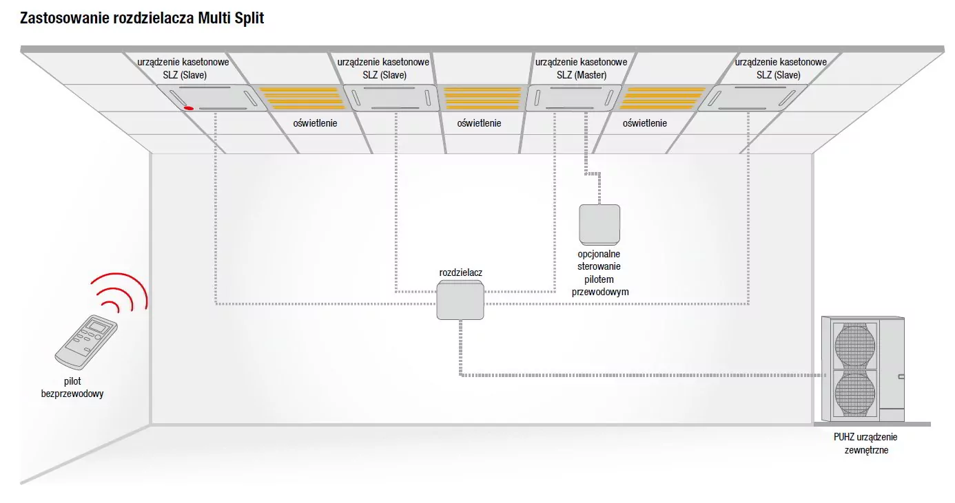 Zainstalowany na zewnątrz agregat znacznie poprawia warunki komfortu akustycznego. Urządzenia typu Split zostały stworzone z myślą o jednoczesnym klimatyzowaniu i ogrzewaniu pomieszczeń, co sprawia, że są wielofunkcyjne i praktyczne. Dostępne są w różnych wariantach zakresu mocy, od 1.5 kW do 25.0 kW, co umożliwia ich zastosowanie w pomieszczeniach o małych, jak i dużych wymiarach przestrzennych.